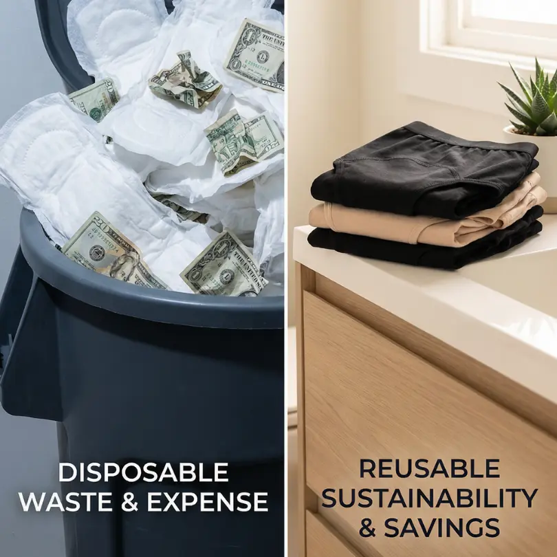 Most women start with 6 to 8 pairs and never look back. No more rushing to the store when you run out. No more panic buying. No more carrying bulky pads in your purse.